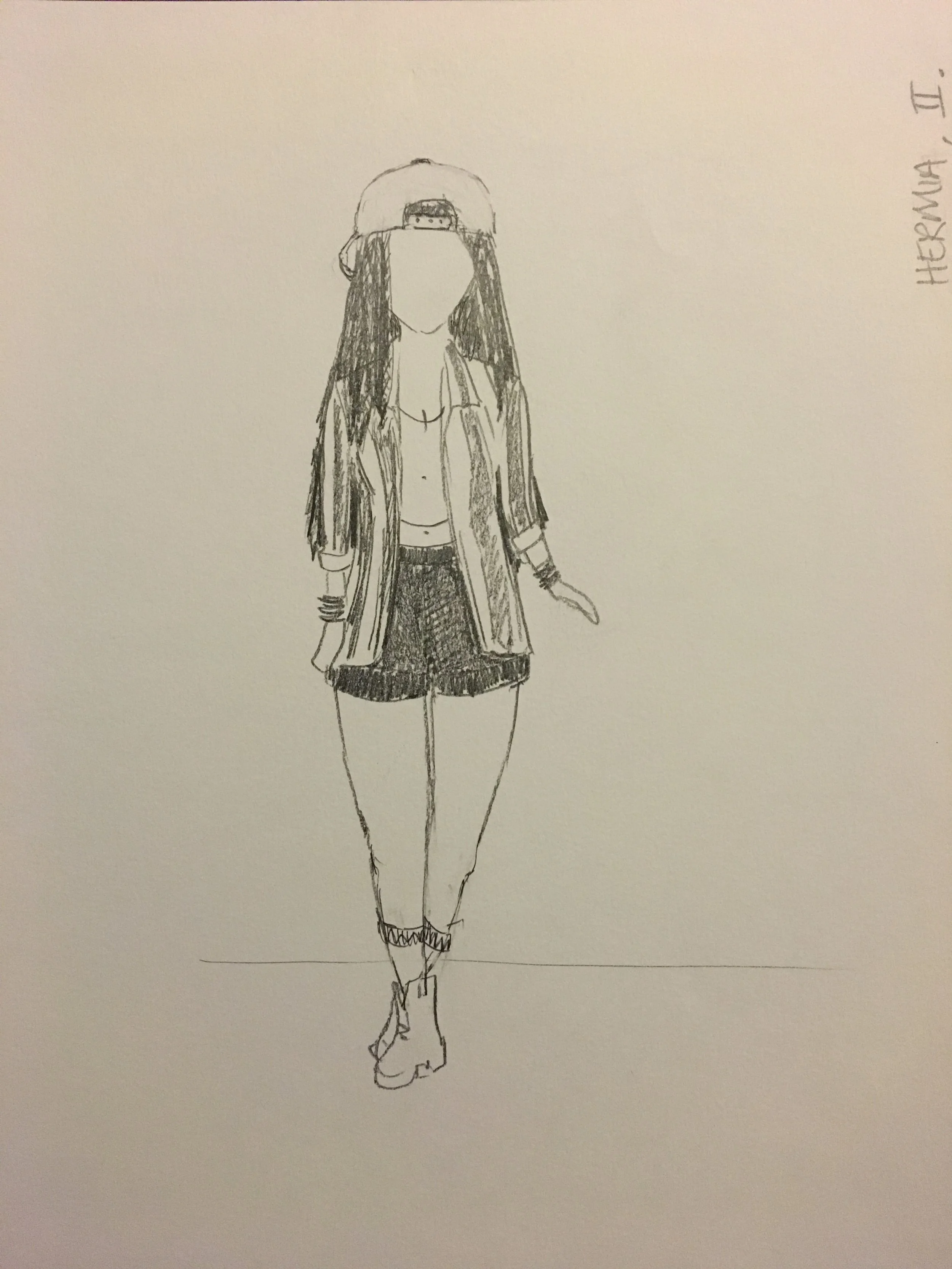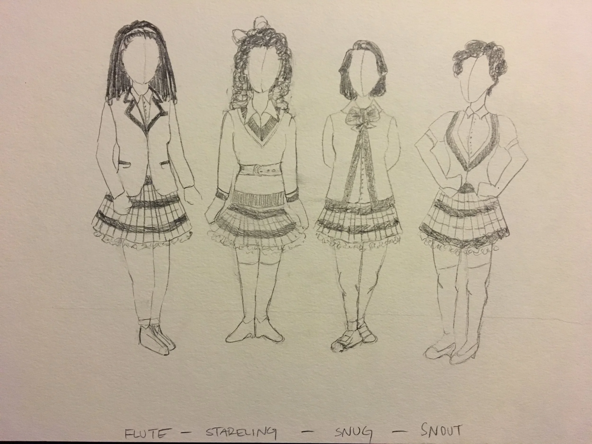 I had worked with Kendra Rai, the Costume Designer/Head of Costumes at Howard University at the time, as an assistant on multiple shows when she asked me to render a show she was designing for Howard. I did the pencil line drawings based on a powerpoint provided by Kendra, and she brought fabrics and color references to the drawings when the design was presented. These were drawings of pieces already purchased for the show with pieces to be bought for the show mixed in. This was the first time either of us had ever done a project like this, but she and everyone else at Howard enjoyed these.