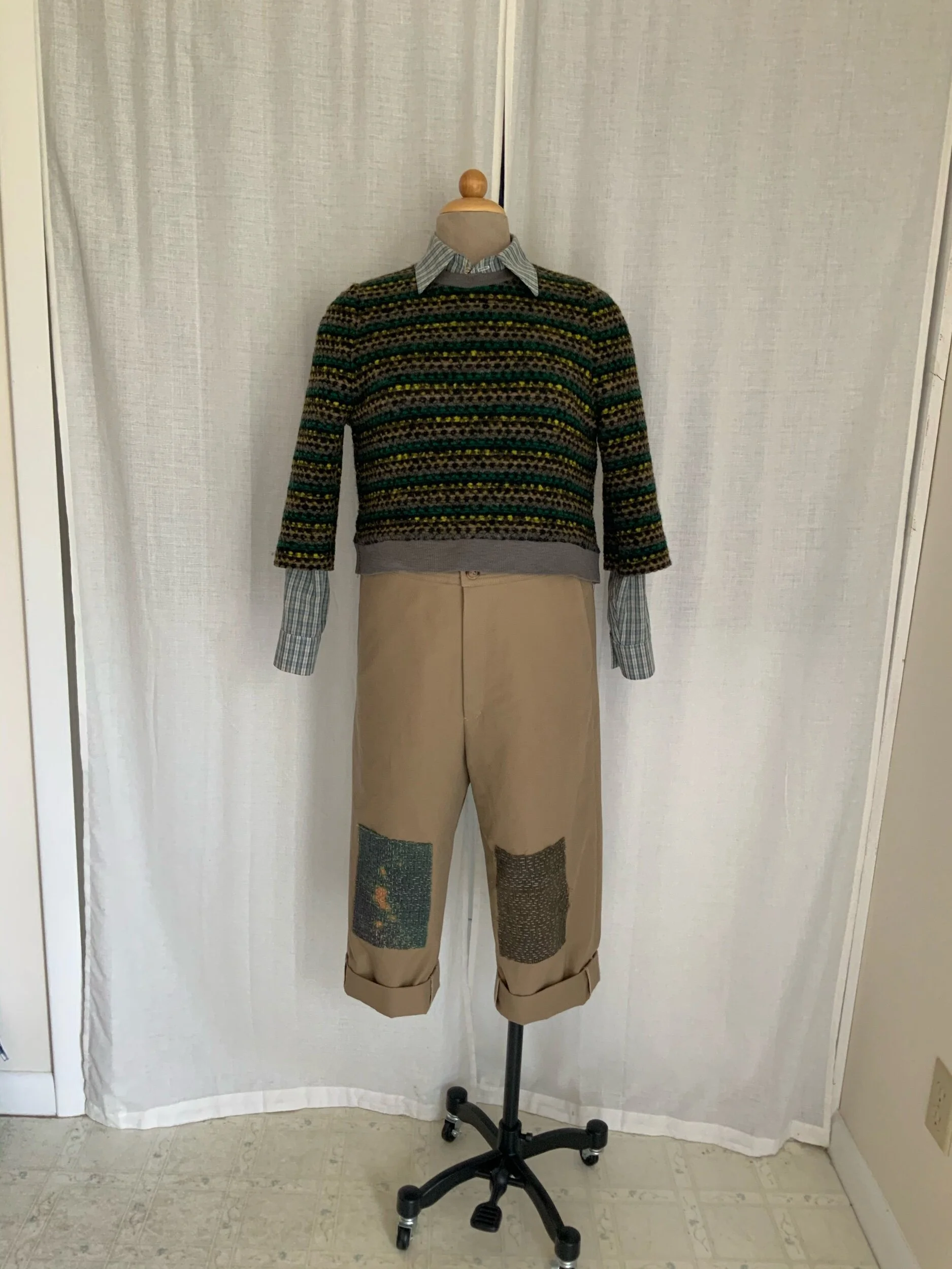 In the making the costumes, I will be interpreting renderings from existing designs of trouser roles from operas previously performed at the Washington National Opera, with special permission by WNO Costume Shop Director Marsha LeBoeuf. In this study, I will be creating four costumes that each use a different technique to reshape the female performers body to appear more masculine while also keeping much of their feminine shape; finding a balance that mirrors the juxtaposition of a higher range female voice portraying a male character. After analyzing each of the four characters, I assigned each an adjective to fine their version of masculinity, Romantic, Comedic, Heroic, and Adolescent, to help influence the interpretation of the design and body of the performer.